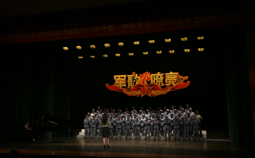 作为国防教育的品牌活动,在军训中举行军歌比赛在我校已坚持多年,比赛参与人数多、影响力大,深受广大师生喜爱。今年与纪念中国人民抗日战争暨世界反法西斯战争胜利70周年主题结合,展示了我校广大青年学子朝气蓬勃、奋发进取的精神面貌和与祖国共奋进、与学校同发展的时代风采,对培育广大学生的爱国主义热情,增强团队合作精神、责任感和使命感,发挥了积极推动作用。