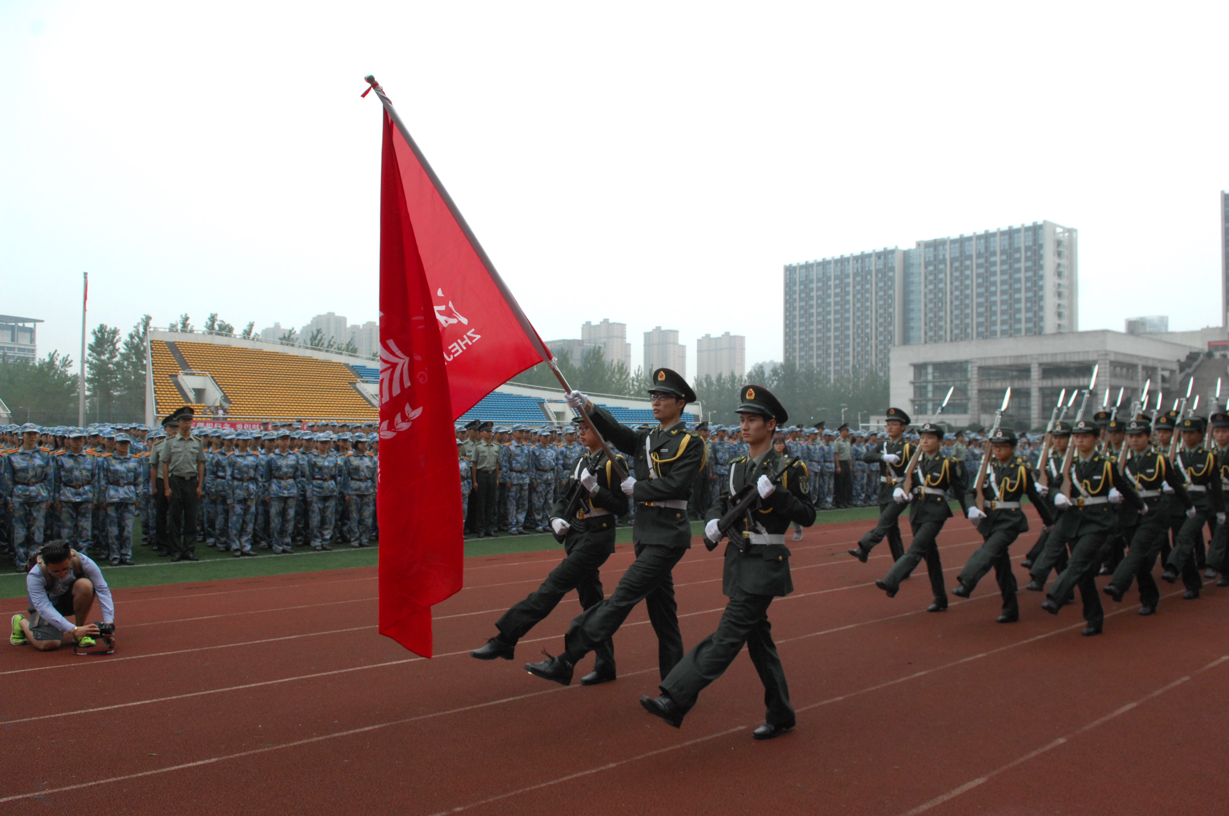 9月28日下午,2015级学生军训会操暨总结表彰大会在下沙校区隆重举行。校长张仁寿,党委副书记王兴杰,人民武装学院何健平,军训师领导和各团政委、副政委出席大会。人民武装部部长金锦华主持大会。