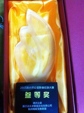 2015年10月10日,杭州滴水杯公益影像纪录大赛落下帷幕,浙江工商大学信息学院绿色之光服务队的参赛视频《来自杭州的我们,来自天台的你们》荣获三等奖。“滴水公益”是一个由民间爱心人士自发组成基于对社会公益事业奉献爱心的一个民间公益品牌,在国内民间公益圈内具有较高的知名度和影响力,杭州高校支教联盟是杭州滴水公益下属的一个专为支教队伍服务的组织。据悉,杭州高校支教联盟组织的20余支支教队伍参加了本次公益影像大赛。