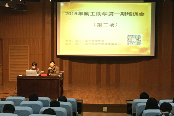 12月10日, 浙江工商大学2015年第一期勤工助学培训会第二场在综合楼第二报告厅如期举行。本场培训会邀请到了浙江传媒学院纪委书记柯力老师担任主讲嘉宾,来自各学院、各部门的150多名勤工助学学生参加了大会。