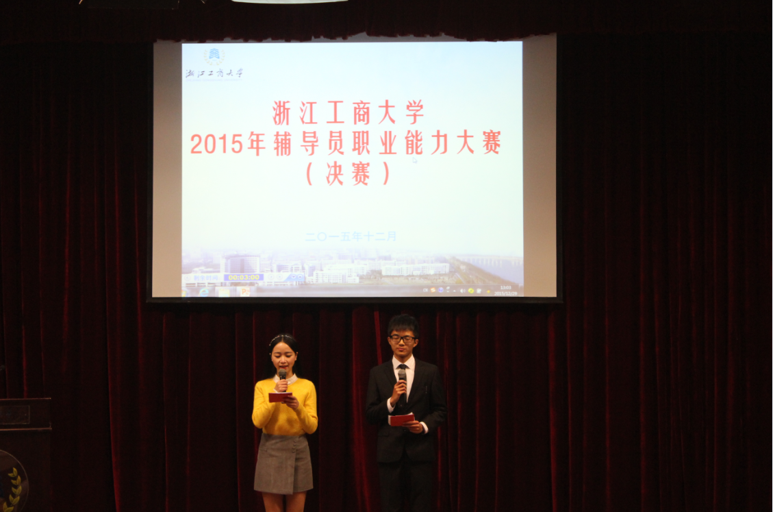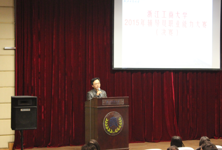 为进一步提升我校辅导员的职业技能和专业素养,推动我校辅导员职业化、专业化发展,提高我校大学生思想政治教育工作水平,12月29日下午,我校2015年辅导员职业能力大赛(决赛)在下沙校区隆重举行。教育厅宣教处副处长吴振辉,校党委副书记任志国,组织部、学生处、研工部、教务处、招就处、保卫处、团委、心理健康教育中心、后勤服务中心等职能部门主要负责人出席并担任评委,比赛还特别邀请到了杭州电子科技大学学工部部长潘申洲、中国计量学院优秀辅导员李风啸担任评委。各学院分管学生工作负责人、全体辅导员参加观摩了本次比赛。