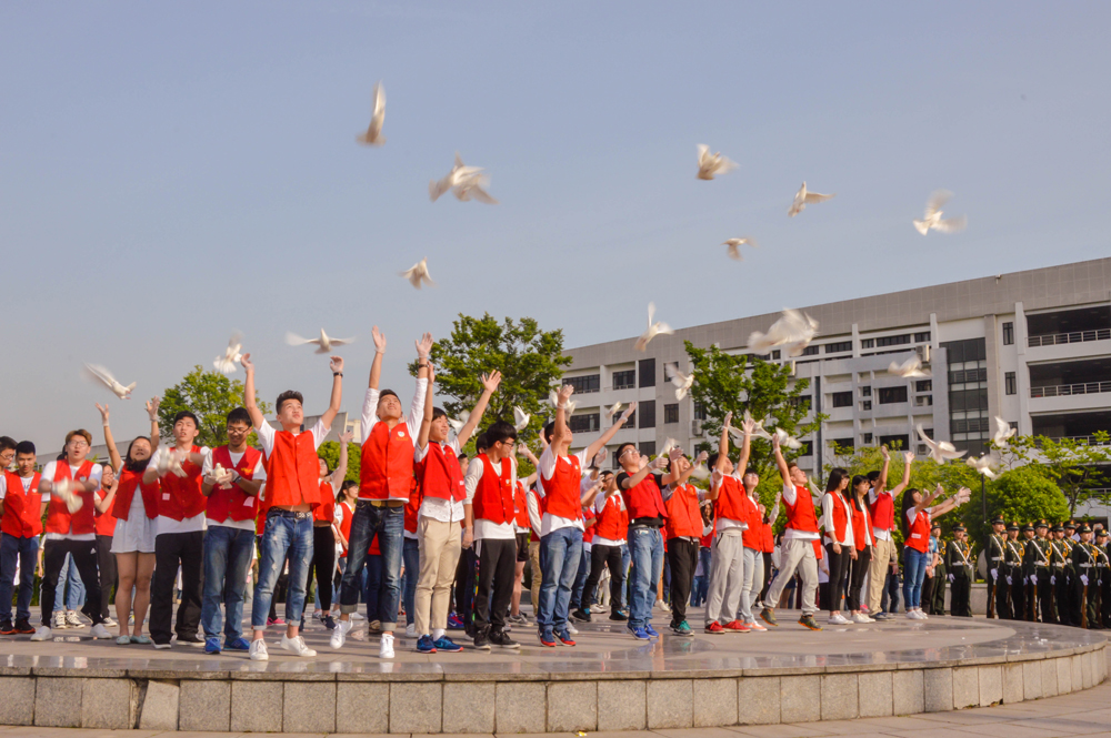 身穿红马甲的志愿者们排列成“G20”的图案,手捧象征和平与希望的白鸽面向国旗郑重宣誓,承诺积极对外展示商大学子的良好风貌,将属于青年的热情与自信传递给全世界。