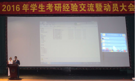 5月26日下午,由学工部、学生处主办,弘毅考研社承办的浙江工商大学2016年学生考研经验交流暨动员大会在下沙校区学生活动中心剧院举行,全体辅导员和各学院学生代表八百余人参加大会。