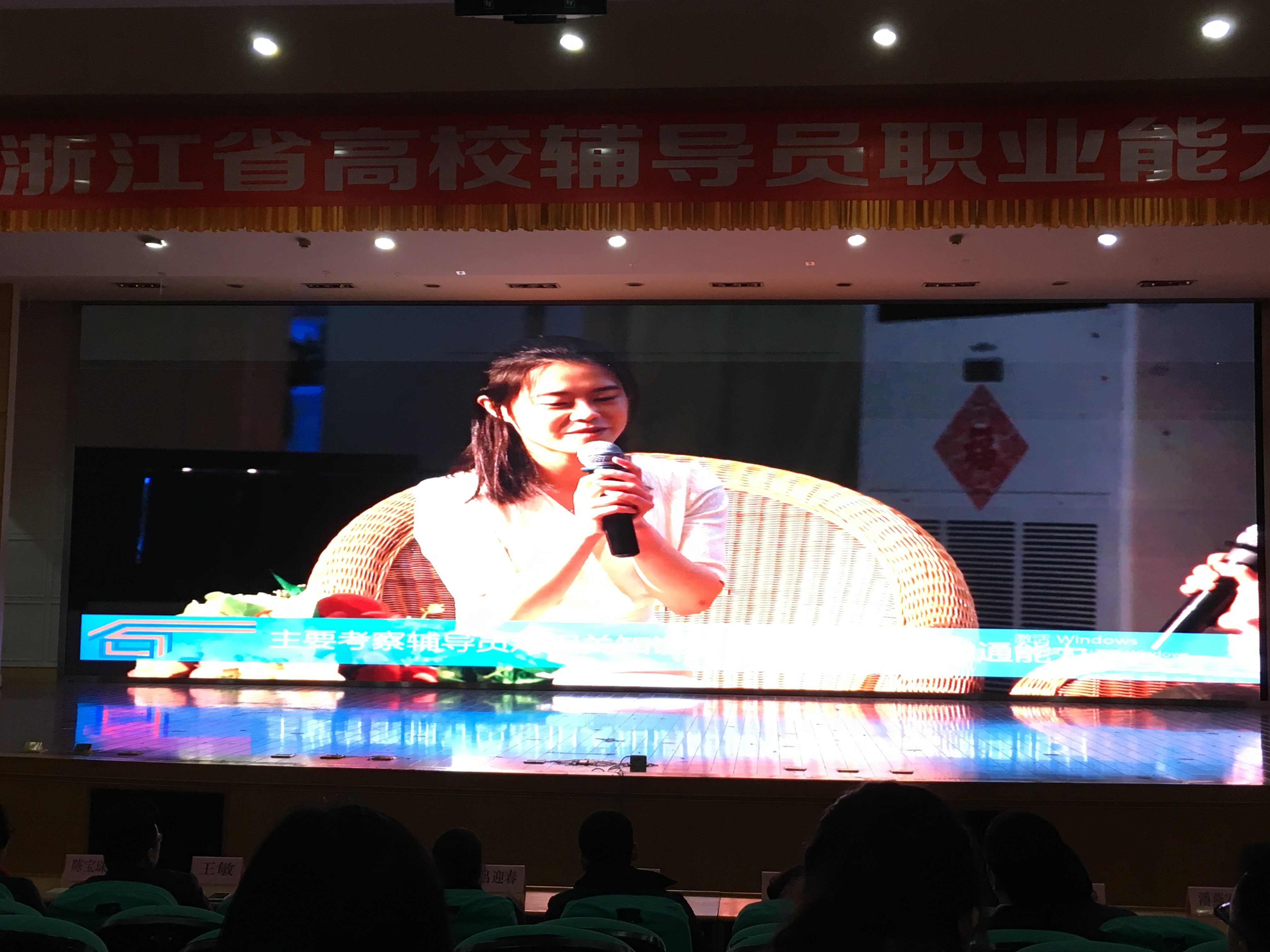 本次大赛包括初赛、复赛、决赛三个阶段。初赛由各高校自行组织实施,选派1至2名辅导员参加复赛,复赛包括基础知识测试、博文写作、案例分析、主题班会四个部分。与以往赛制不同,本次大赛来自全省高校的97名辅导员共同来到浙江师范大学参加基础知识测试、博文写作和案例分析,然后结合主题班会的成绩确定进入决赛的选手名单,这不仅是对参赛选手专业知识的考察,更是对他们心理素质的考验。我校孙小蒙老师以复试第一的优异成绩成功晋级决赛。决赛分为谈心谈话和主题演讲两个环节,共有晋级决赛的40名优秀辅导员同场竞技。在决赛中,孙小蒙老师台风稳健、思路清晰、沉着应答,展现了她扎实的理论功底、丰富的专业知识和较强的学生事务能力,最终取得了佳绩,并获得了评委和观摩比赛辅导员的一致好评。
