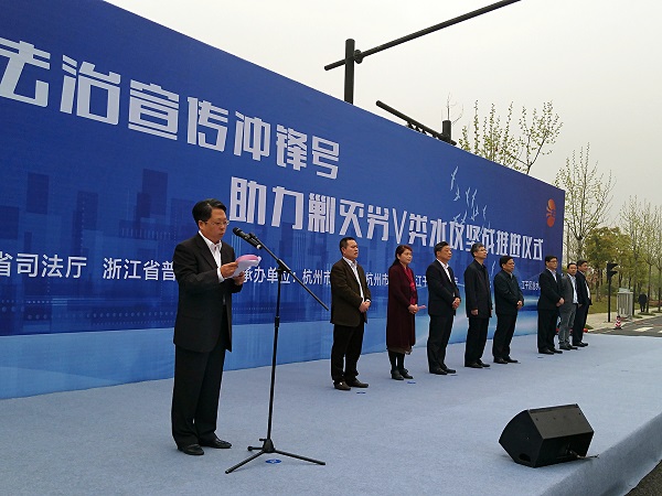2017年4月7日周五下午,由浙江省司法厅、浙江省普法办主办,杭州市普法办、杭州市司法局 、江干区人民政府承办,并由江干区普法办、江干区治水办协助举行的“整治劣V类水启动仪式”在杭州市江干区丁兰街道举行。浙江工商大学法学院、知识产权学院30多位师生作为志愿者代表参加了此次启动仪式。
