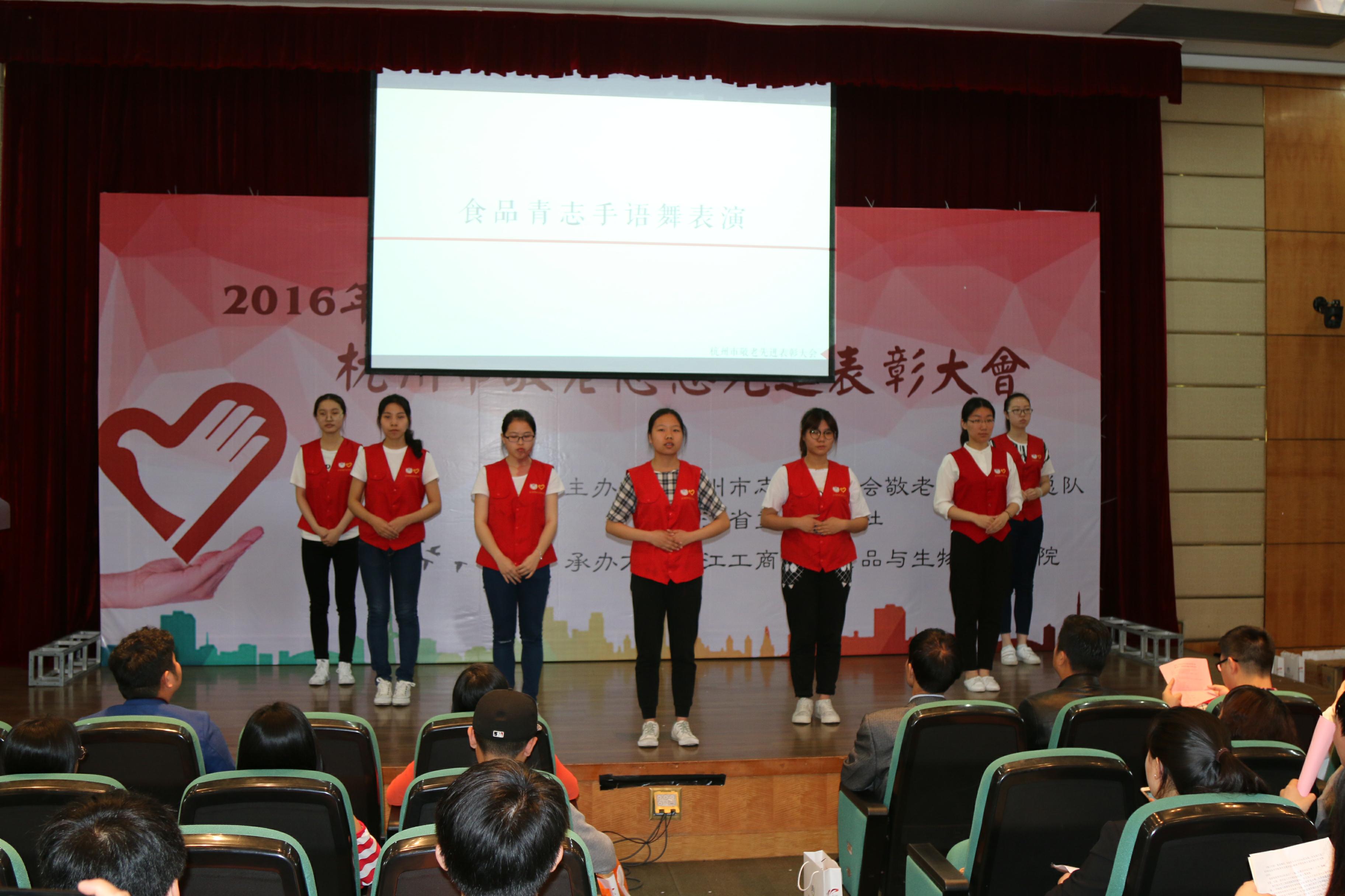 在大会期间,浙江工商大学食品青志心译小队带来了精彩的手语舞表演,手语舞带给大家的不仅仅是视觉上的享受,更多的是关爱社会群体,服务他人的奉献精神.