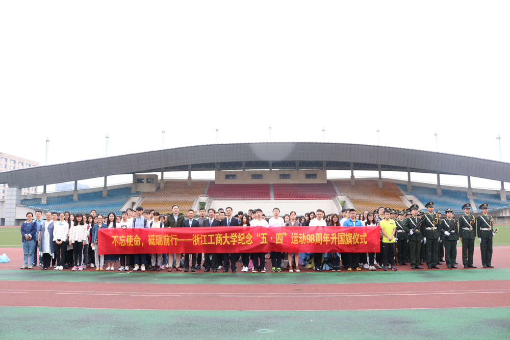 5月4日,学校举行庄重的升国旗仪式以纪念五四运动98周年,激励青年学生发扬“爱国、进步、民主、科学”五四精神,砥砺前行,立志做大事,成为走在时代前列的奋进者、开拓者和奉献者。校长陈寿灿,学工部、人民武装部、团委,金融学院、食品与生物工程学院、环境科学与工程学院、校级学生组织等师生代表200余人参加了升旗活动。学校国旗护卫队承担了此次升旗任务。