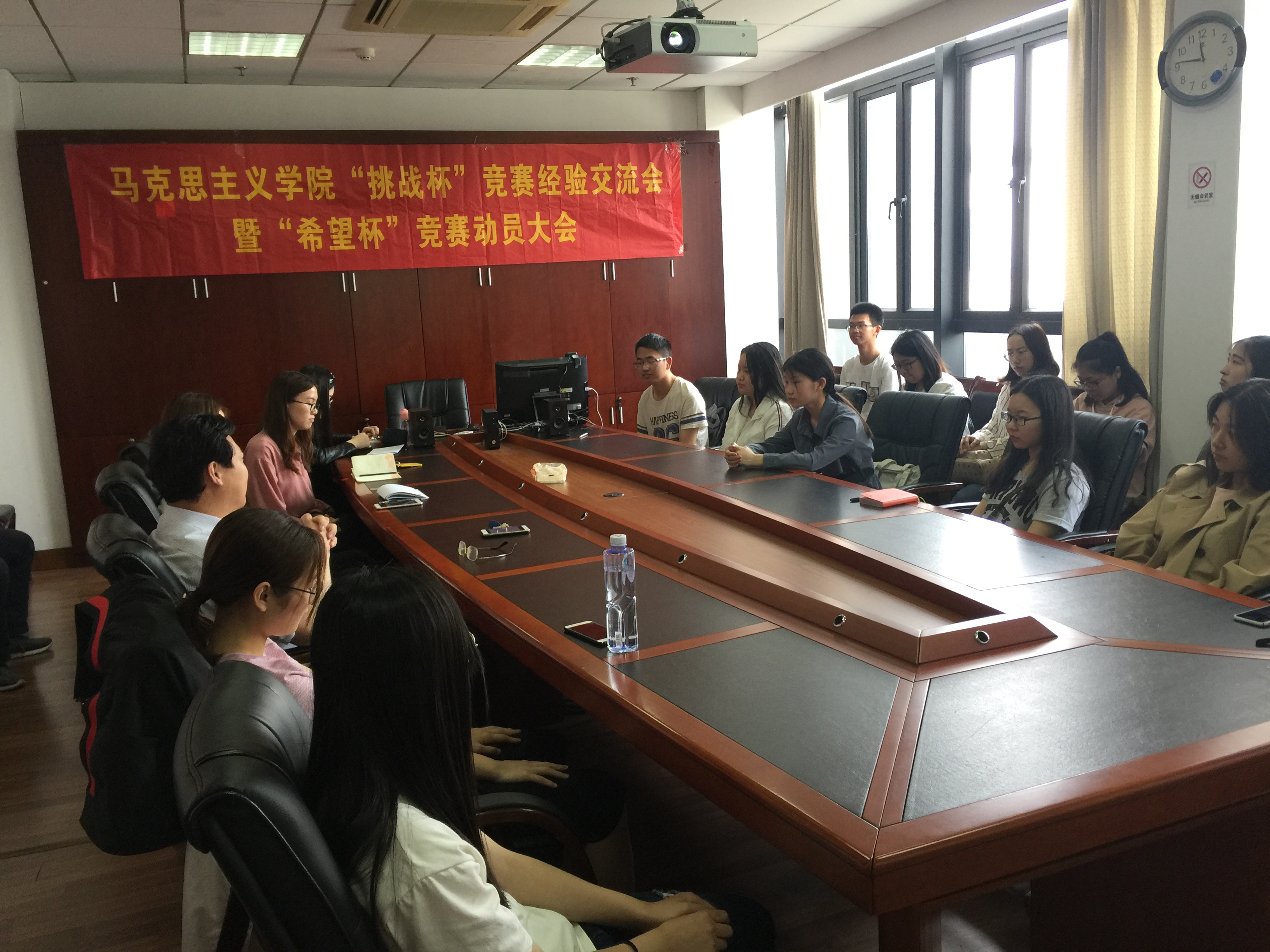 5月4日上午,马克思主义学院在1229会议室举办“挑战杯”学生科技竞赛交流会暨学院“希望杯”学术科技作品竞赛动员大会,学院党总支书记崔杰出席交流会,2016-2017级硕士研究生、2016-2017级哲学专业本科生参加交流会。交流会由学院学办蒋关军老师主持。