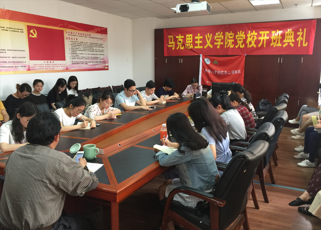 5月14日上午,马克思主义学院党校第三期暨青峰人才学院青山领袖班开班典礼在综合楼1229室举行,院长陈华兴出席典礼,入党积极分子、重点发展对象和预备党员近30人参加典礼,典礼由学办主任蒋关军主持。