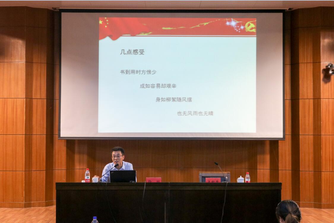 报告会上,他结合党的十九大经历和自身的工作经验,从历史中的党代会、体验中的党代会、细节中的党代会、文本中的党代会、话语中的党代会、人物中的党代会、词汇中的党代会等若干角度,深入浅出、图文并茂,对党的十九大精神进行了系统全面的宣讲。他还引用“书到用时方恨少,成如容易却艰辛,身如柳絮随风摆,也无风雨也无晴”四句短诗,解读作为一线思政工作者对于十九大精神的思考和感悟。最后他还再次强调青年人为什么要关注党代会报告,鼓励我校青年要勇于奋进,担当起实现中华民族伟大复兴中国梦的大任。