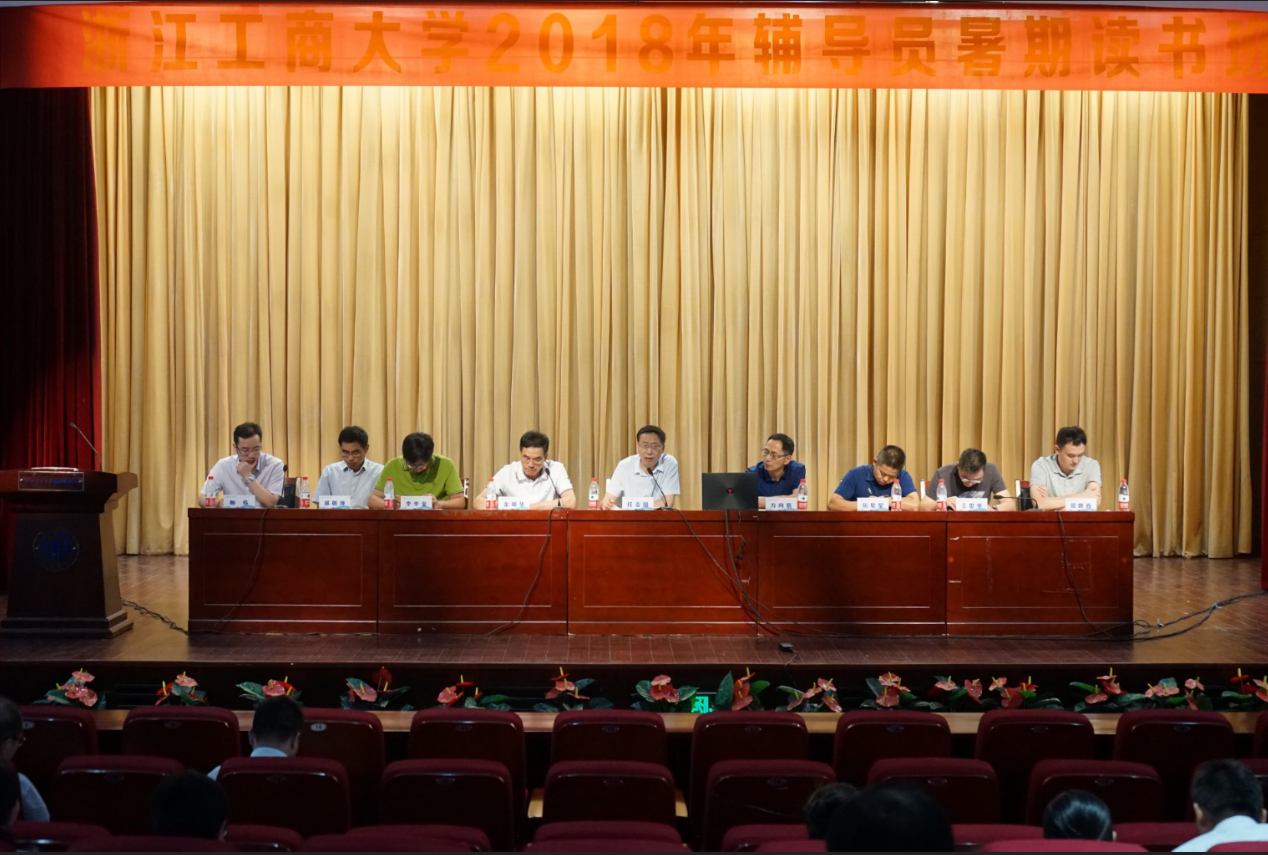 8月27日至29日,学校在杭州商学院桐庐校区举行2018年辅导员暑期读书班,校党委书记金一斌、校党委副书记任志国出席读书班,宣传部、学工部、研工部、教务处、招就处、保卫处、团委、后勤服务中心等职能部门负责人,各学院分管学生工作负责人,全体辅导员参加了读书班。