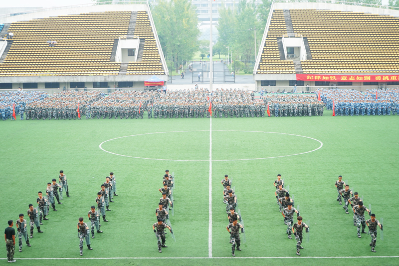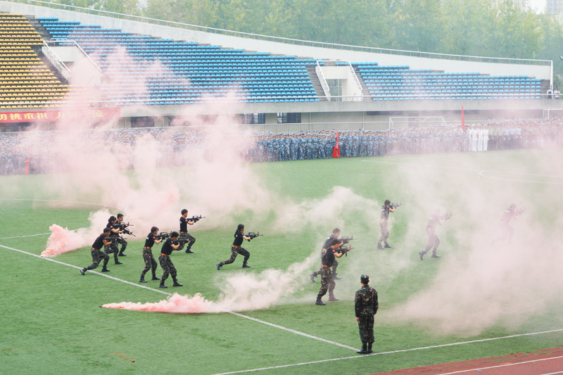 分列式结束后,还进行了系列汇报表演,女子匕首操、军体拳方阵斗志昂扬,势如霹雳;男子棍术和武警盾牌,棍如激光、盾如波涛;女子海军旗语不遑多让,波涛荡漾,铿锵亦温柔;战术表演配合默契,擒敌拳干净利落,招招制敌。他们的表演充分展示了本次军训的丰硕成果,用出色表现诠释了坚韧的意志、强健的体魄、饱满的精神和昂扬的斗志,赢得现场师生的阵阵掌声。