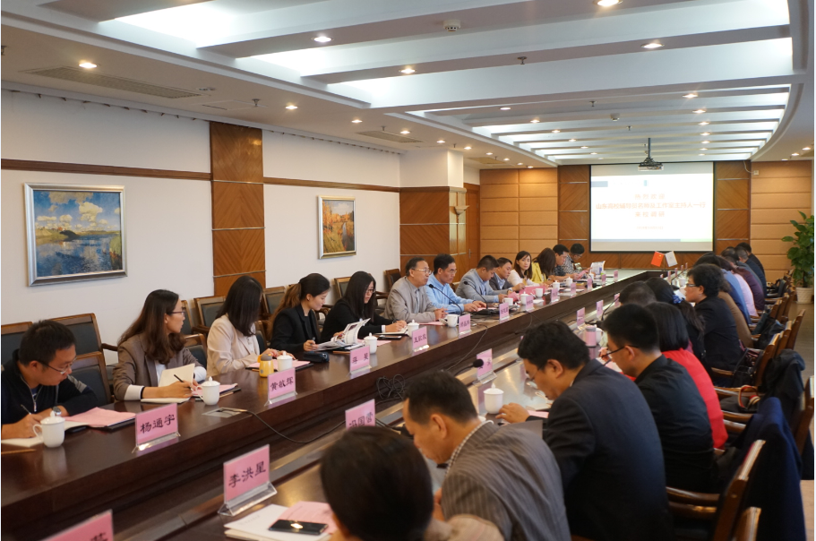10月15日,山东省委教育工委宣教处副处长王莉、教育部高校辅导员培训和研修基地(山东大学)办公室主任夏晓虹携山东高校辅导员名师及工作室主持人20余人来我校调研,校党委书记金一斌会见了调研组一行,校党委副书记任志国,党校办、宣传部、学工部、部分学院学生工作负责人参加了座谈会。