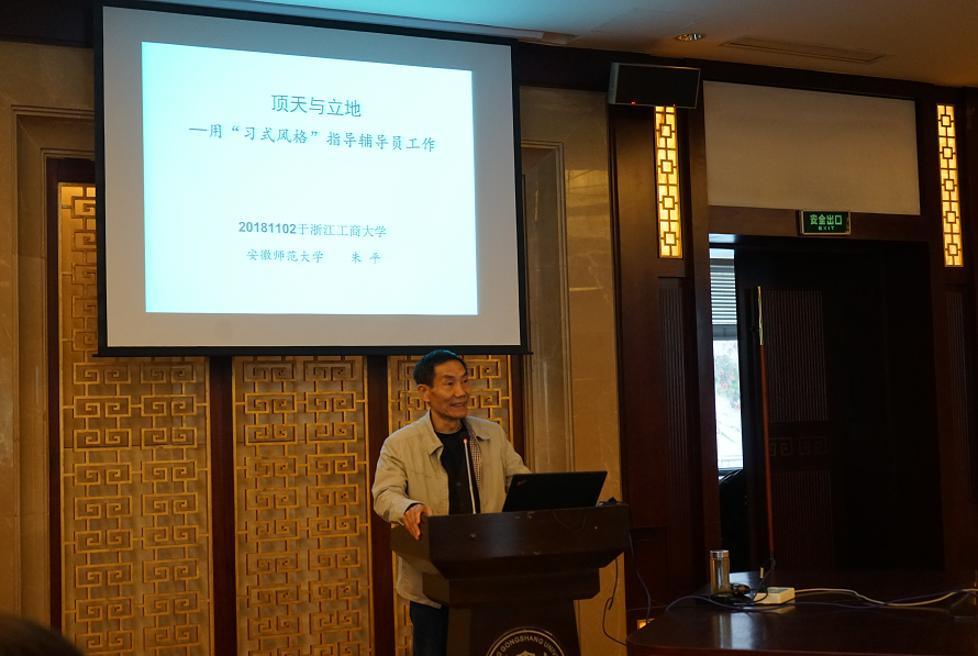 启动仪式上,“2+7”素质能力发展工程导师、安徽师范大学马克思主义学院教授朱平为全体辅导员做了题为《顶天与立地—用“习式风格”指导辅导员工作》的专题辅导报告,他从习近平行事风格的示范与启示、习近平的思维方式与工作作风、“习式风格”指导辅导员工作三个方面与全体辅导员进行了分享和互动。