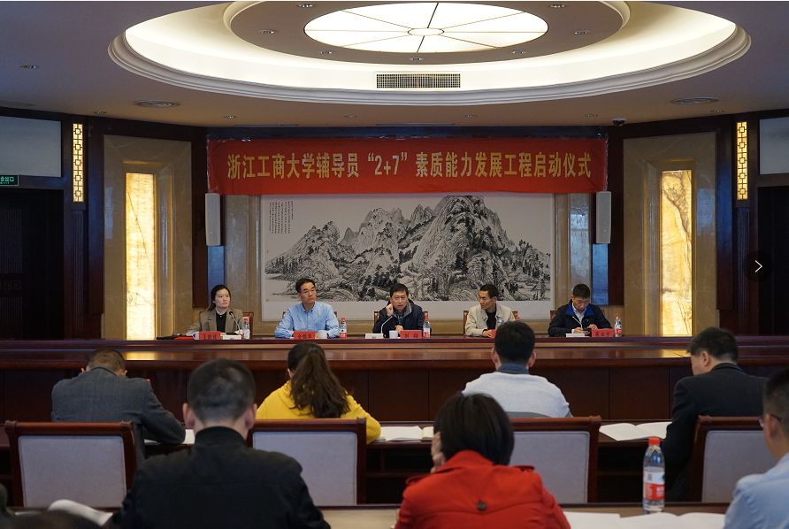 “2+7”素质能力发展工程是以全国教育大会和全国、全省、学校思想政治工作会议精神为指导,全面贯彻落实《普通高等学校辅导员队伍建设规定》(教育部令第43号),根据《中共浙江工商大学委员会辅导员队伍建设实施细则》的具体要求,建立“2+7”(2个中心+7个工作坊)辅导员职业化、专业化发展平台,旨在进一步推进我校辅导员分类发展,以研究推动工作,实现辅导员素质能力提升和科研能力提升,切实提高辅导员的职业化、专业化水平。