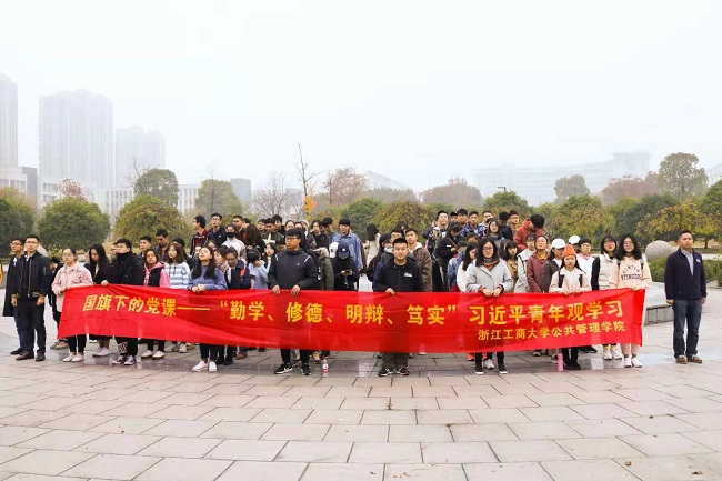 11月26日,公共管理学院在鸽子广场举行了升国旗仪式,同时召开了题为“勤学、修德、明辨、笃实”习近平青年观学习的党课。学生处副处长厉星星老师、公管学办主任邵彬彬老师,全体辅导员、预备党员及2018级全体班干部参加了本次升国旗仪式。本次升国旗仪式由公管学院团委书记高仓健老师主持。