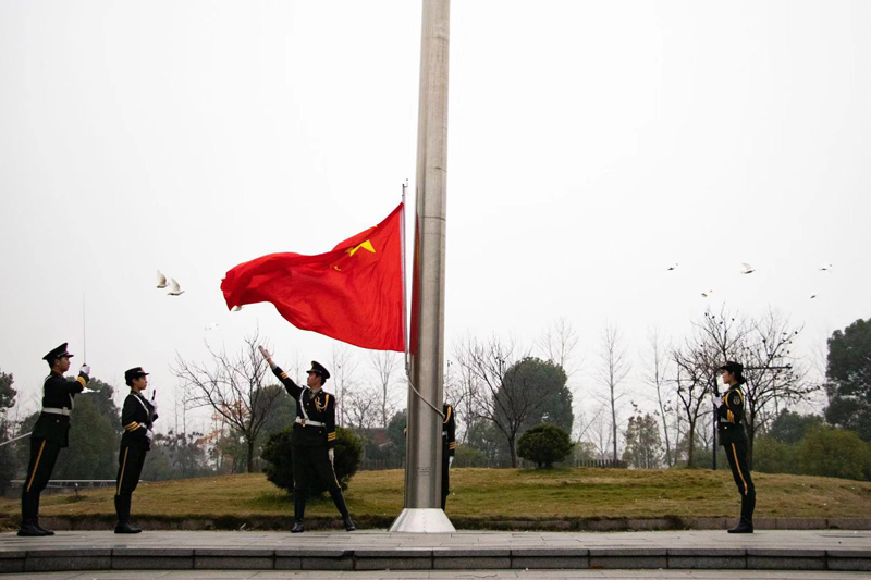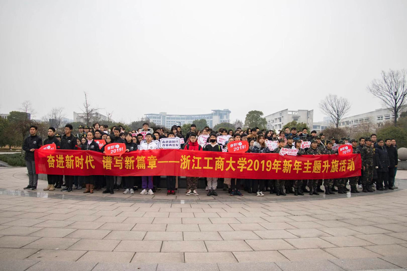 风雨送春归,飞雪迎春到。2019年1月1日上午,我校在下沙校区举行“奋进新时代 谱写新篇章”2019年元旦升国旗仪式,迎接新年的到来。副校长苏为华,学工部、人民武装部、研工部,食品与生物工程学院、环境科学与工程学院、信息与电子工程学院、国防军事协会、大学生发展中心、国旗护卫队等学院及学生组织的师生代表参加了活动。