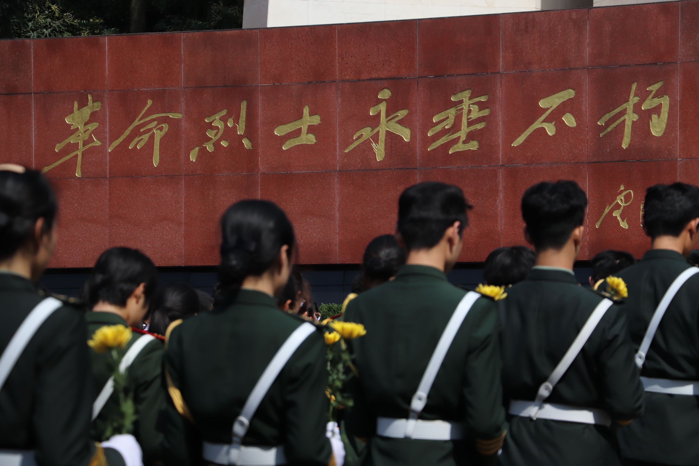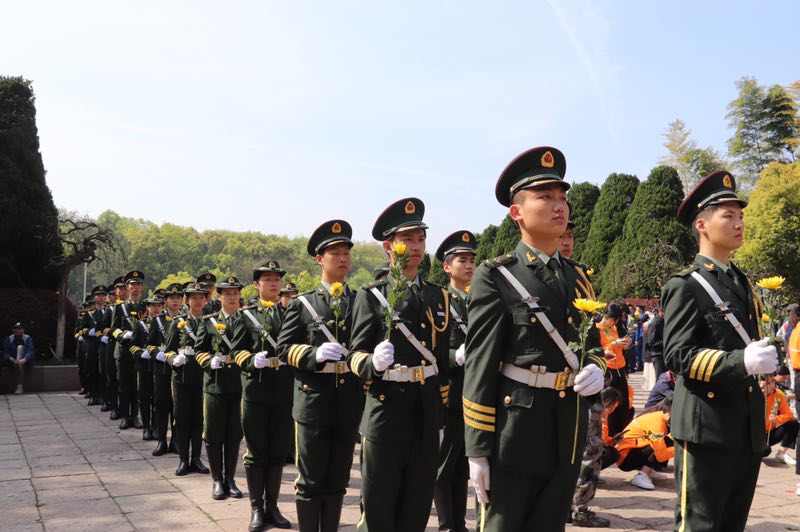 来自全省各地600余名军人、学生、社会各界人士在纪念碑前默哀致敬。默哀结束后,队员们依次上前献花,表达对革命先烈的敬仰。
