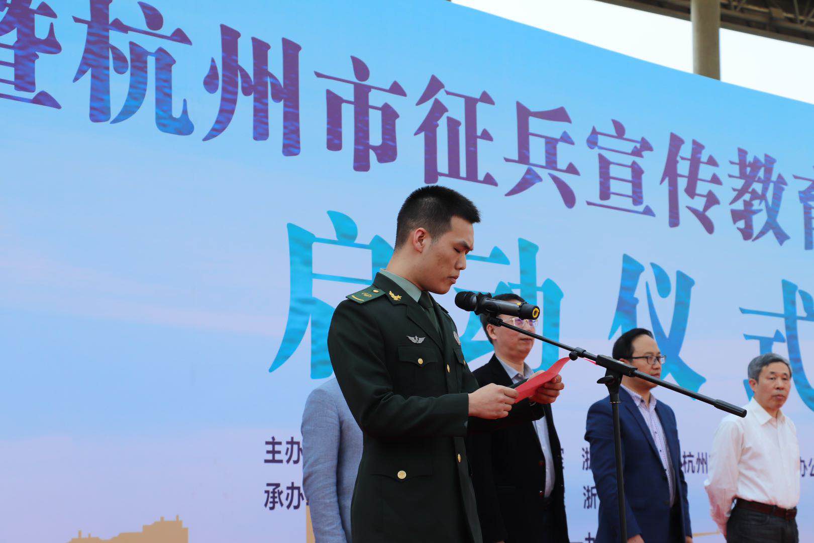 莘莘学子携笔从戎,参军报国建功立业。4月17日下午,浙江省暨杭州市征兵宣传教育进高校活动启动仪式在我校举行。浙江省征兵工作领导小组副组长、省军区副司令员周少锋,省教育厅副厅长丁天乐,杭州警备区司令员任明龙,校党委书记金一斌,省军区动员局副局长刘剑明,校党委副书记任志国,省教育厅体卫艺处处长李建章,杭州江干区副区长王跃强,杭州江干区人武部部长黄建利,杭州市各区县市人武部负责人以及下沙高教园区14所高校的千余名大学生参加。启动仪式由省人民政府征兵办公室主任、省军区动员局局长武春辉主持。
