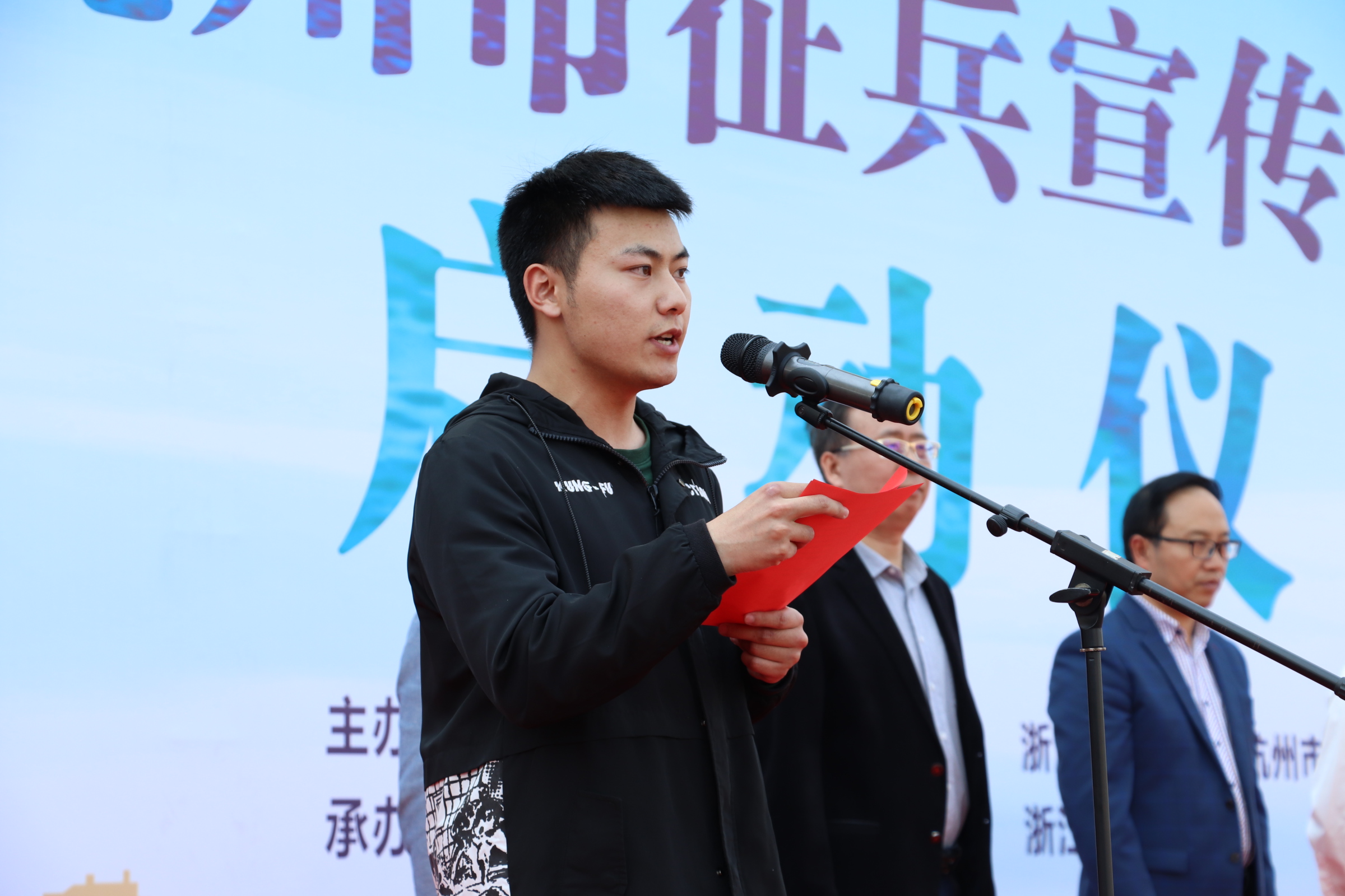 仪式上,我校工商管理学院2015级学生梅海洋作为优秀退役大学生士兵代表,与大家分享了其难忘的军旅生活和精彩的大学生活。杭州电子科技大学学生官裕庭代表应届毕业生向大家发出参军入伍、报效祖国的倡议。