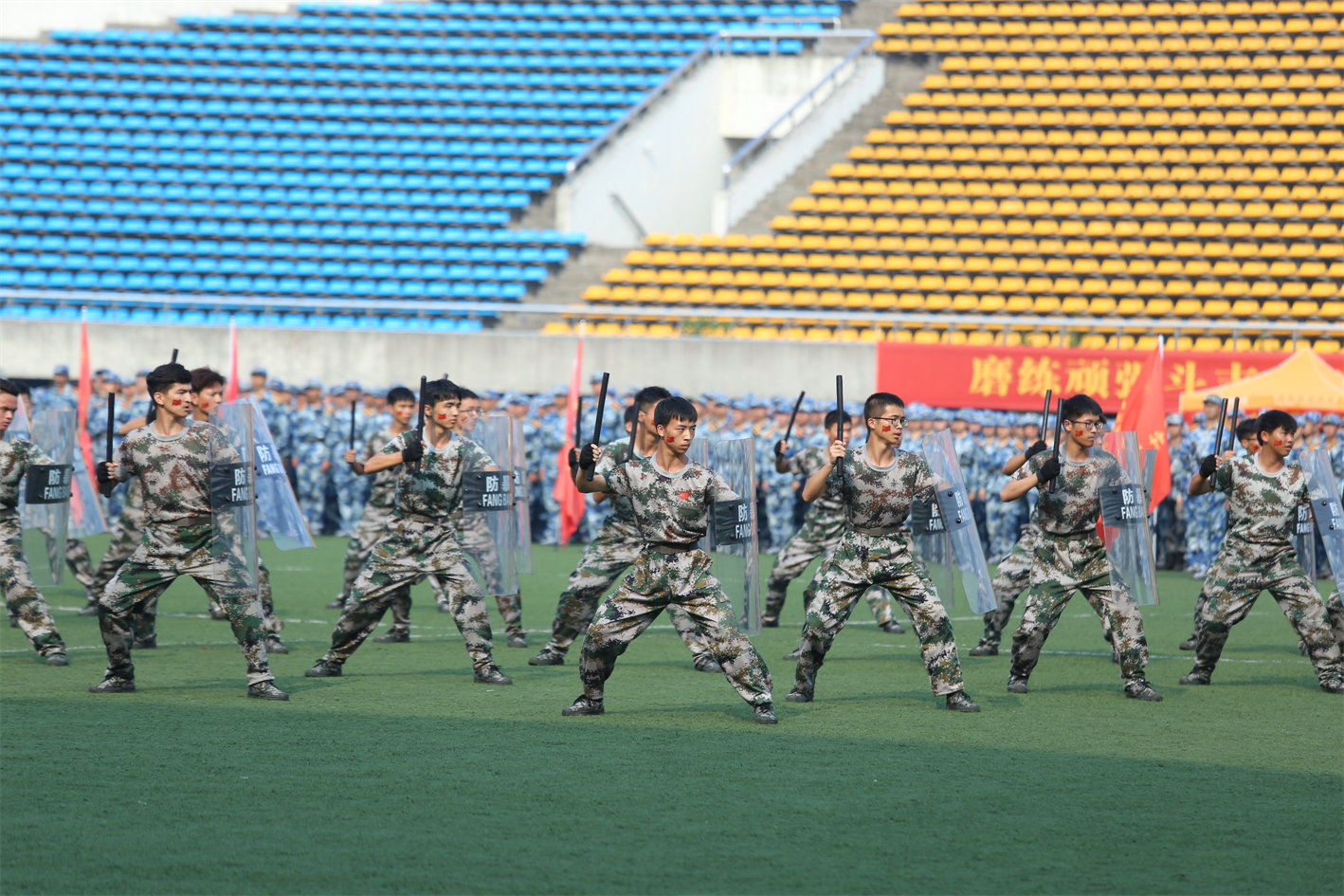 分列式后,参训学员还进行了海军旗语、警棍盾牌、匕首操、武警棍术、军体拳、格斗战术等科目表演,以飒爽的英姿、高昂的士气和恢弘的气势赢得了现场阵阵掌声。
