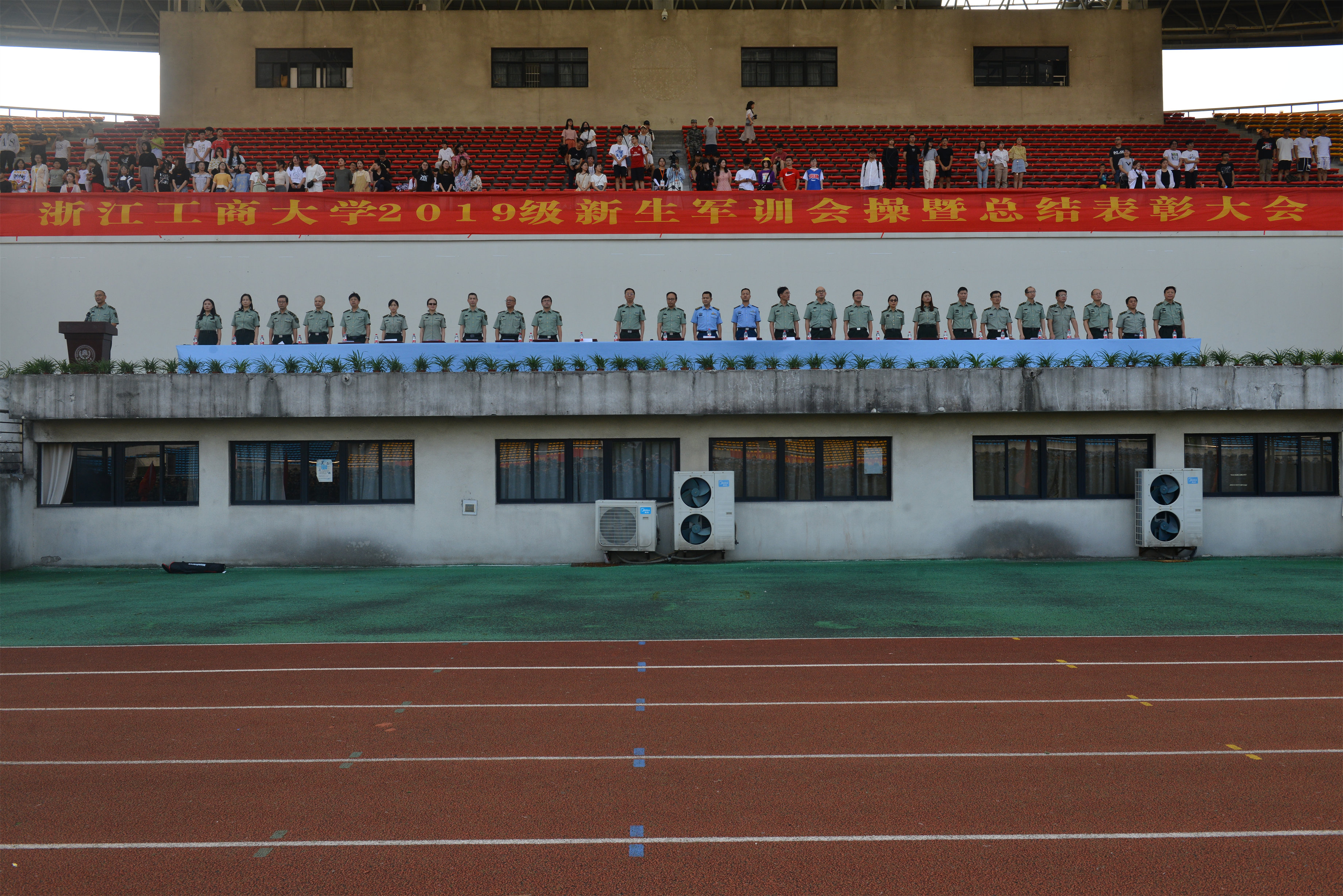 金秋九月,丹桂飘香,向阳花开。9月8日下午,2019级本科学生军训会操暨总结表彰大会在下沙校区田径场举行。军训师政委、校党委书记金一斌,承训部队驻杭空军某部首长,军训师副政委、校党委副书记任志国,军训师副师长、副校长赵英军出席活动,军训师各部门负责人、各团政工干部和2019级本科学生参加大会。