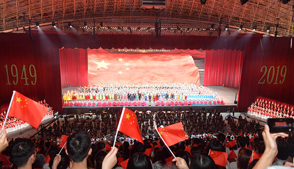 9月28日晚在杭州黄龙体育馆上演了“我的祖国”——浙江省庆祝中华人民共和国成立70周年大型音乐舞蹈史诗,我校师生代表应邀观看演出。