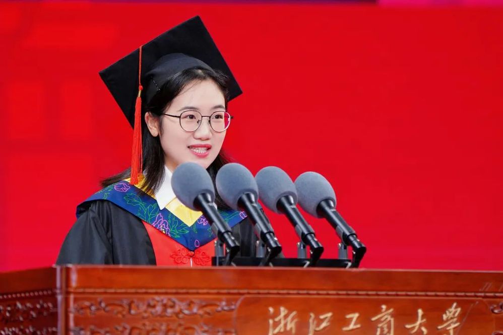 在学校的四年时光,我见证了学校百年华诞和食品学院的蓬勃发展。岁月镌刻,商大教会了她做人之本、坚守初心和协作之美。浙商大人身上诚毅勤朴 的气质,让校训不再是墙上的鎏金大字,而成为可触摸的精神坐标。恩师与同窗伙伴是我的人生知己,陪伴我走过博士生涯,护送我踏入婚姻殿堂,见证我人生蜕变。亲爱的同学们,请大家带着商大给予我们的智慧与力量,勇敢坚定地追求卓越!