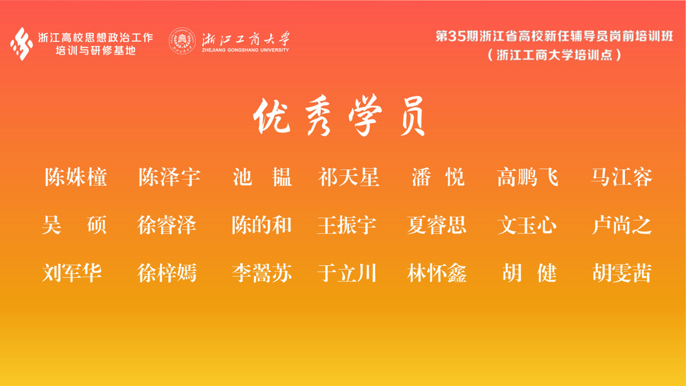 启航思政路,青春绽浙里。第35期浙江省高校新任辅导员岗前培训班(浙江工商大学培训点)的全体学员已整装集结,蓄势待发,以坚定的政治信仰,勇担时代责任,踏实做好立德树人工作,努力当好学生成长的“人生导师”和“知心朋友”!