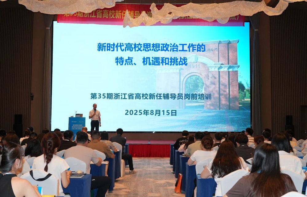 浙江工商大学学工部副部长鲍碧丽作培训班课程介绍。本次培训聚焦新任辅导员角色转变与职业基础能力提升,精心设计了为期八天的系统课程。内容设置涵盖政治能力锻造、意识形态安全、突发事件处置、职业理想认同、法律风险防范等专题,并强化“谈心谈话”“家校沟通”等实务训练;形式安排上,通过主题研讨、班级破冰、实战演练、研学实践等多维方式,助力学员快速进入职业角色,夯实育人根基。作为承办单位,浙江工商大学在此次培训中配备专业班主任团队,并联合全省优秀师资,全力保障培训实效。