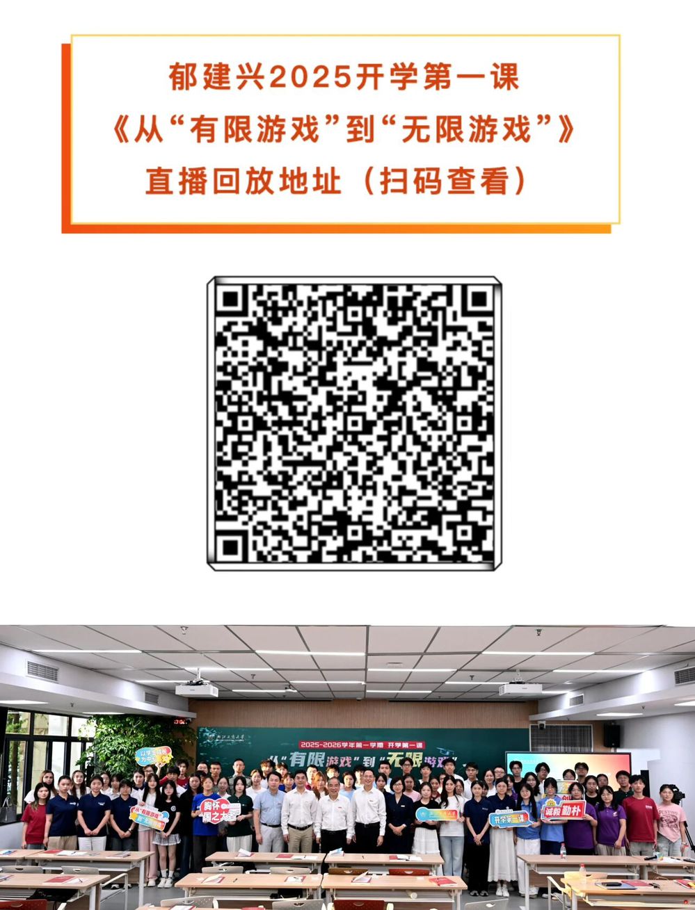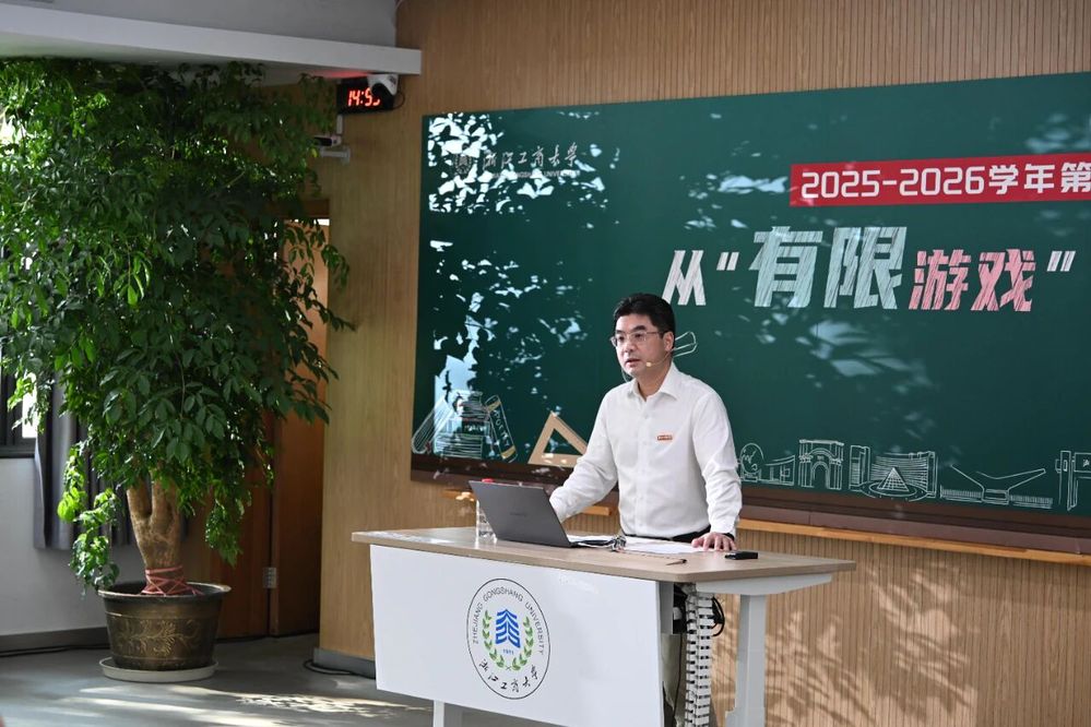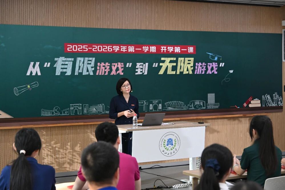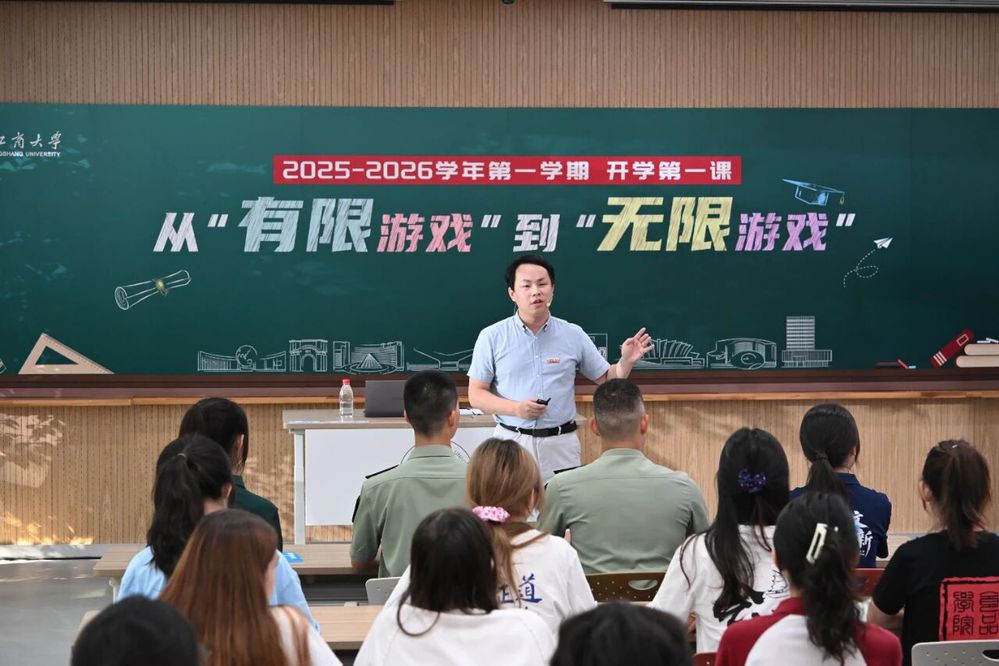 9月26日下午,浙江工商大学党委书记郁建兴以《从“有限游戏”到“无限游戏”》为题,为7935名2025级本硕博新生热情开讲“开学第一课”,师生共答成长课题,解锁未来无限可能。校党委副书记方向明主持开学第一课。