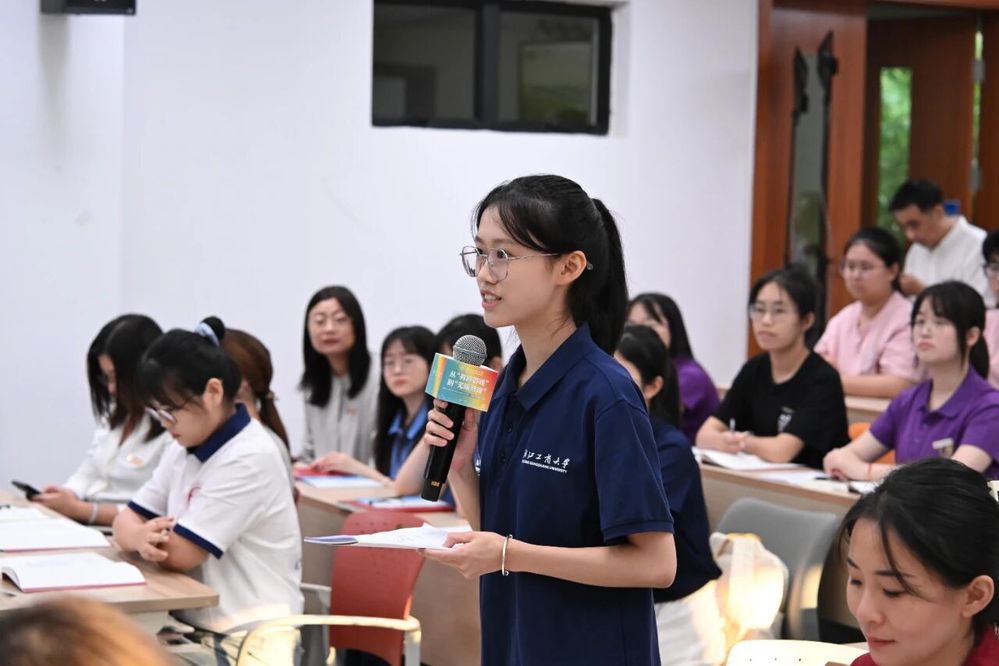 开学第一课上,郁建兴邀请了3位教师代表与自己同题共答:首批浙江省高校黄大年式教师团队负责人、计算机学院院长王勋教授分享了《人工智能演进与通用人工智能曙光》,第五届全国高校教师教学创新大赛一等奖获得者、金融学院邓弋威副教授分享了《当好未来教师 打造未来课堂》,2024年度学校卓越辅导员邵彬彬分享了《在互信互爱的师生共同体中成长》。