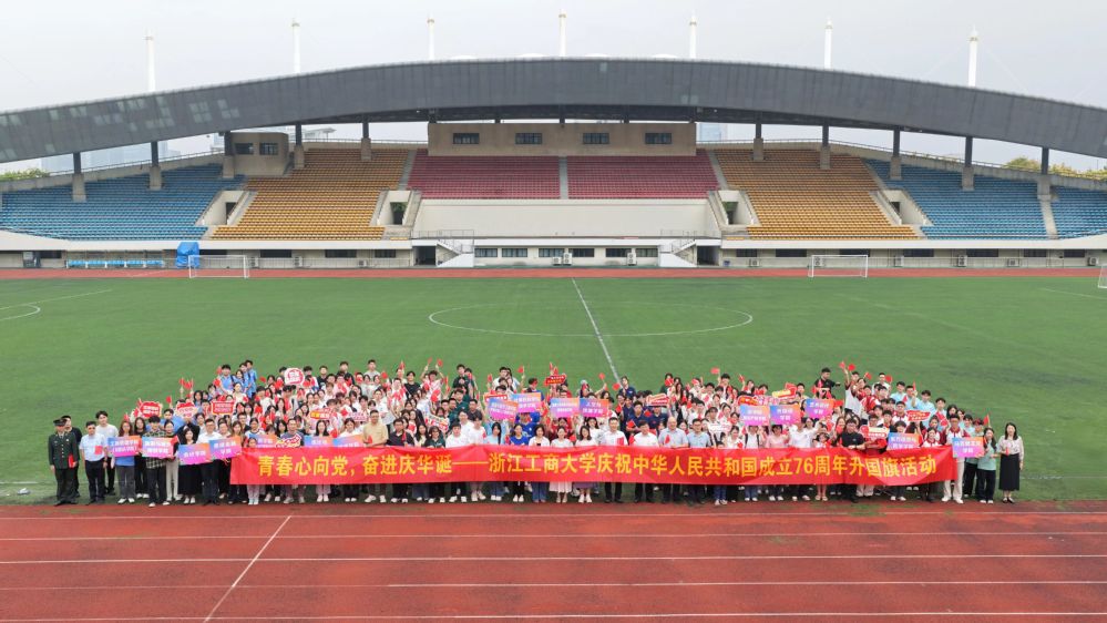 10月1日上午,浙江工商大学庆祝中华人民共和国成立76周年升旗仪式在下沙校区举行,校纪委书记胡金生,学工部、研工部、校团委等部门负责人,教师代表、退役军人代表、各学院学生代表参加仪式,为祖国母亲送上最诚挚的生日祝福。