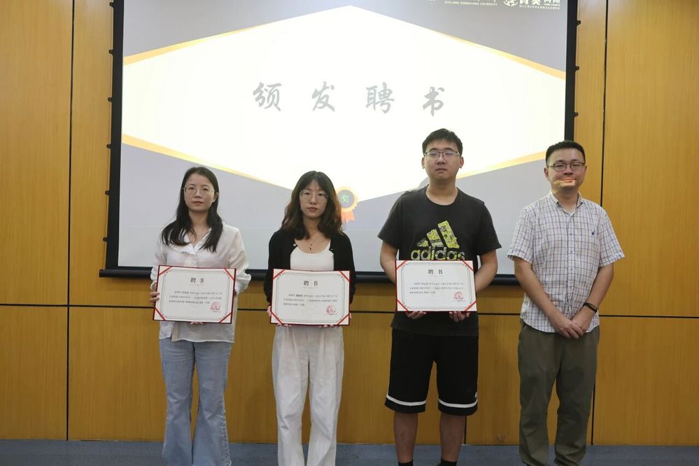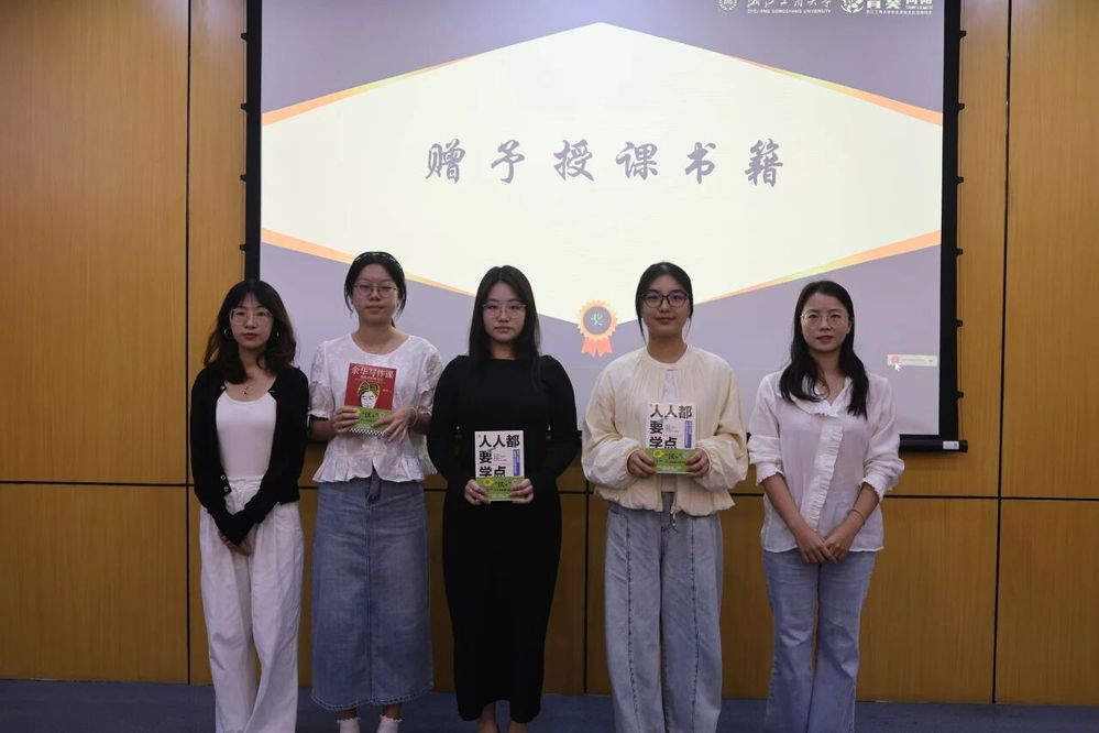 在启动仪式现场,学生工作部学生管理科主管金帅老师为第十期“沃+”学生素质能力提升项目的授课教师颁发聘书,“沃+”授课教师为学员授予课程教材。