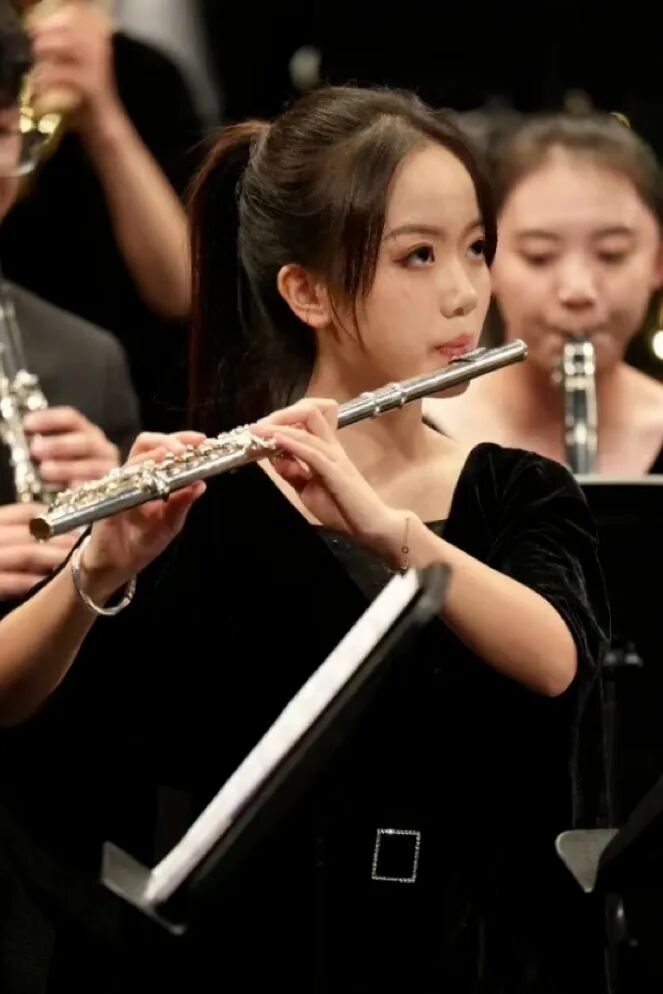 最煎熬的是国赛备赛。元旦那天,方语琛一个人坐在排练室,一边擦笛头一边掉眼泪:“怕排练耽误考试,又怕练得不够拖团队后腿。”哭完,回想合排时老师“长笛声部注意气息和音准”的反复叮嘱,她咬咬牙,夹上音准器,一遍又一遍地练。“合奏不是个人秀,音准、音色、节奏都要跟大家合得上,不能因为我一个人出错。”