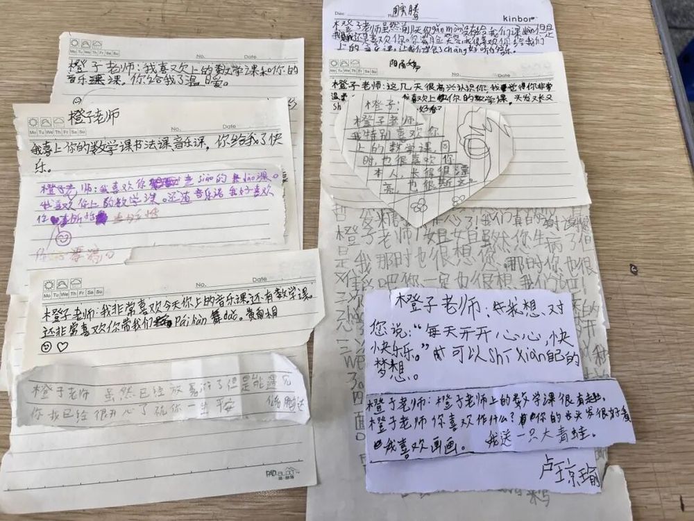 那阵子正逢杭州亚运会,她便在课余时间一句句教孩子们唱《同爱同在》。有个叫乐乐的男孩总跑调,她就蹲下来,凑在他耳边一句句教。方语琛回忆说,乐乐得了奖励的糖果从不拆,总揣在兜里,“我要给一年级的妹妹,她在舞蹈班,我等她下课。”支教结束那天,乐乐塞给她一张画,歪歪斜斜的长笛边写着“橙子老师,我以后也要学长笛。”这张画和许多小朋友的留言一起,一直夹在方语琛的备课课本里。