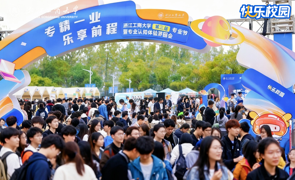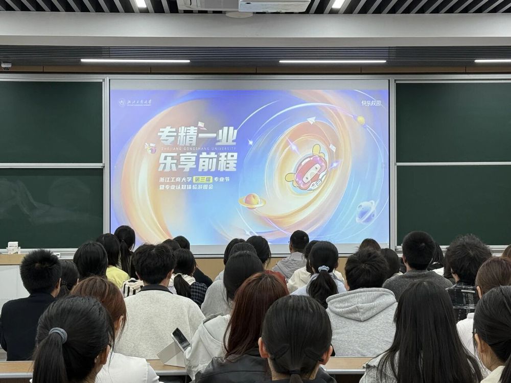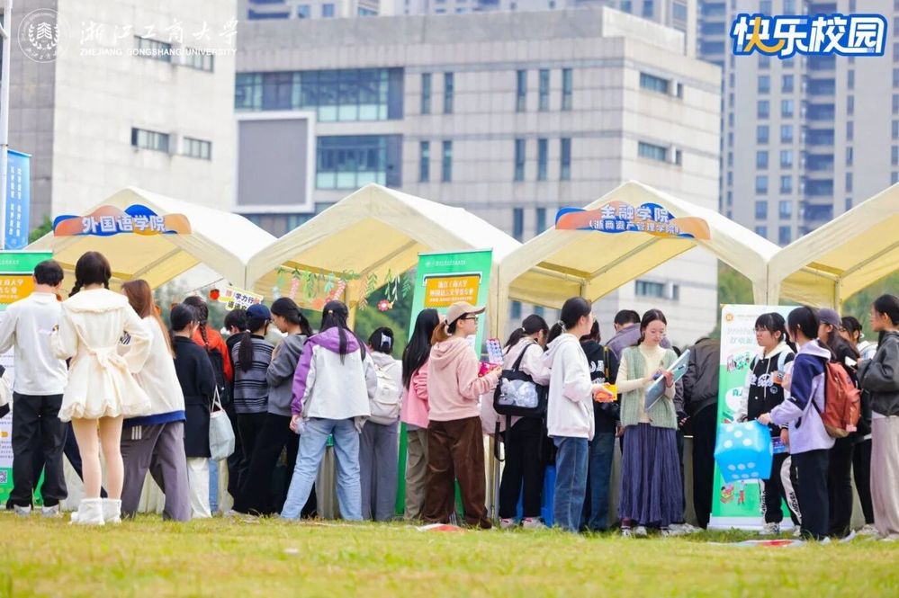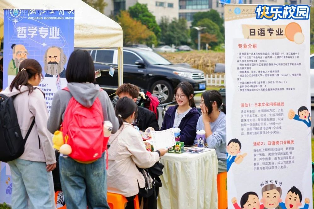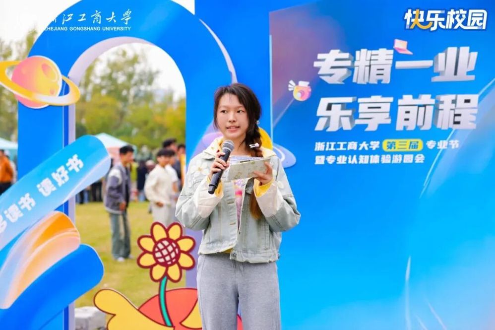 围绕学校《浙江工商大学使命愿景红皮书(2025版)》和“一号育人工程”,为了更好地推进我校学风建设、营造良好的学习氛围,构建以学生成长为中心的卓越人才培养体系,在本科学生始业教育期间给予更为系统全面的专业成长发展启蒙,帮助本科学生更好地了解专业,主动认知专业,激发学习兴趣,了解学科交叉,开拓视野、明晰使命,11月5日,“专精一业,乐享前程”浙江工商大学第三届专业节暨专业认知体验游园活动分别在下沙校区花海草坪和教工路校区成功举办。各学院专业形象推荐官、2025级班主任代表、辅导员代表、2025年国奖生代表和学院优秀学子代表与同学们进行现场专业交流。