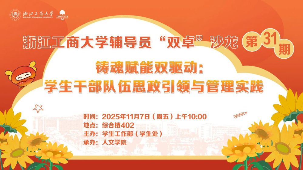 11月7日上午,由学生工作部主办,人文学院、未来传播学院承办的第31期辅导员“双卓”沙龙在下沙校区综合楼402教室成功举行。本期沙龙以“铸魂赋能双驱动:学生骨干队伍思政引领与管理实践”为主题,浙江工商大学团委张华,公共管理学院黄立芳应邀主讲。校学工部副部长鲍碧丽、人文学院党委副书记张捷,以及各学院60余名辅导员出席沙龙活动,活动由鲍碧丽主持。