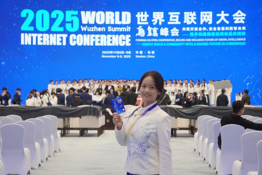 2023 年,她的志愿舞台拓展至国际领域。在亚洲克柔术锦标赛与杭州亚运会中,作为技术官员接待组的 “小青荷”,她直面跨文化交流挑战,用专业服务赢得国际认可,当乌兹别克斯坦技术官员用蹩脚中文夸赞 “谢谢你,中国女孩,真漂亮。” 时,这份认可不仅属于她个人,更属于整个 “小青荷” 团队。这个月,在乌镇互联网大会志愿服务中,她从容展现风采,见证科技与人文交融。截至目前,她的志愿时长已达808小时,而那些凌晨四点的星空、外国友人写下的 “盛世中华”、乌镇河道里的灯笼光,成为了比数字更珍贵的独家记忆。