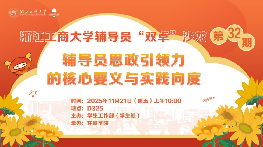 为深入贯彻落实全国教育大会精神,提升辅导员思政引领专业能力,11月21日上午,浙江工商大学第32期辅导员“双卓”沙龙在D325会议室成功举办。本次沙龙以“高校辅导员思政引领力的核心要义与实践向度”为主题,特邀浙江大学马克思主义学院于洋作专题分享,环境学院党委副书记石周燕、公管学院党委副书记邵彬彬及全校50余名辅导员齐聚一堂,共探思政育人新路径。沙龙由学工部副部长鲍碧丽主持。