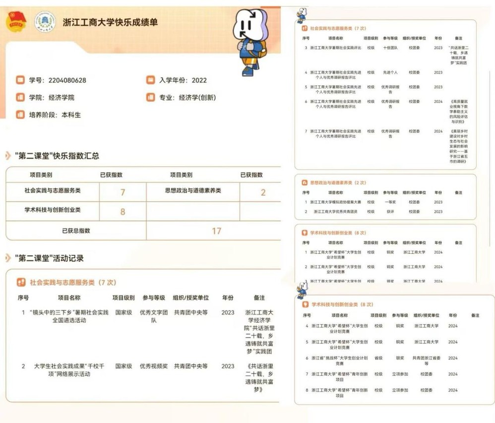 四季轮回,时光匆匆,在浙商大的每一季都有别样的精彩与收获。在这里,我收获了强健的体魄、高尚的情操、务实的作风与开阔的视野,更拥有了一张专属的“快乐成绩单”。