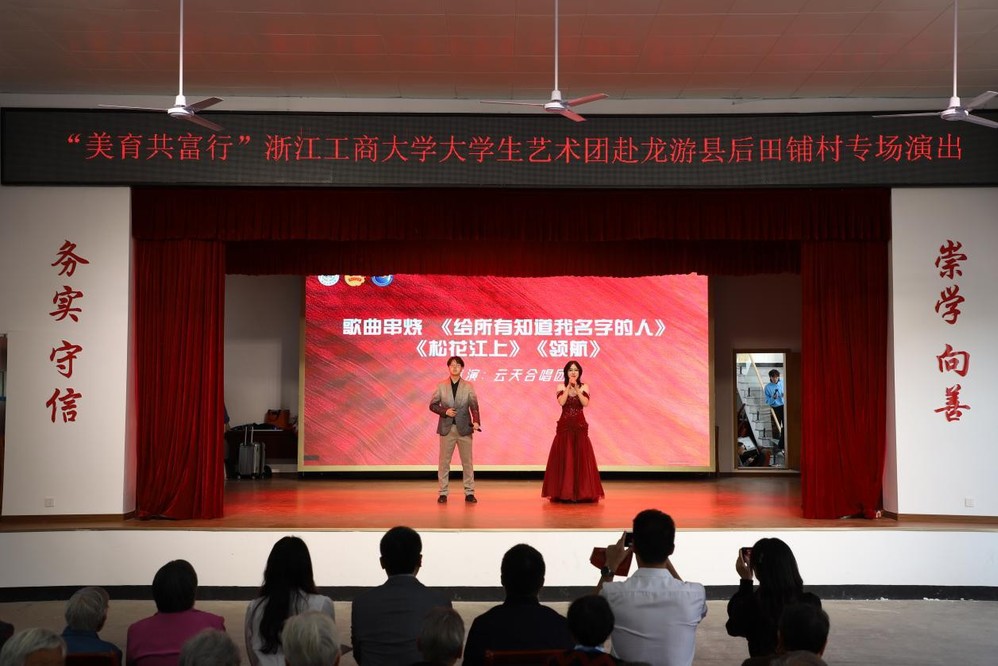 十月,我随大学生艺术团赴衢州龙游参加“美育共富行”活动,71名演员通力协作,为1300余名师生村民带来了精彩演出,看着中学生围过来请教街舞技巧,村民们和演员亲切合影,那份双向奔赴的温暖让我动容。