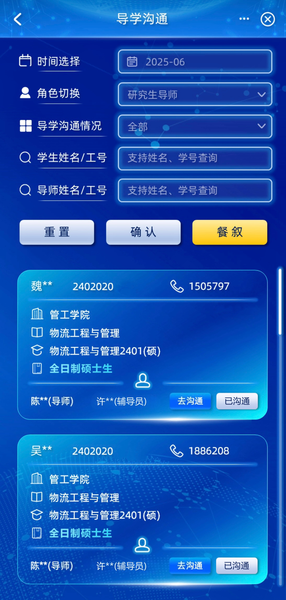 举办首届“导学关系建设月”系列活动70余场,打造“全过程育人、全场景融合、全主体协同”的导学生态。突出学术引领,通过学术沙龙、工作坊、主题直播等形式激发师生科研共鸣;聚焦榜样示范,举办第四届“我心目中的好导师”展示交流会,通过“学生提名、学生评议、导师展示”的评选机制,遴选“好导师”10人,打造一批师德高尚、业务精湛、充满活力的高素质研究生导师队伍,激励导师做研究生成长成才的引路人;开展首批19个导辅协同育人项目立项工作,着力构建“导师主导、辅导员协同”同心圆式的研究生思政教育体系;打造“导学沟通”,通过数智赋能,餐叙对接,促进研究生和导师之间一键连接;注重情感联通,通过手写书信、师生合影、文体联赛等活动增强导学情谊,营造协同共进良好氛围。