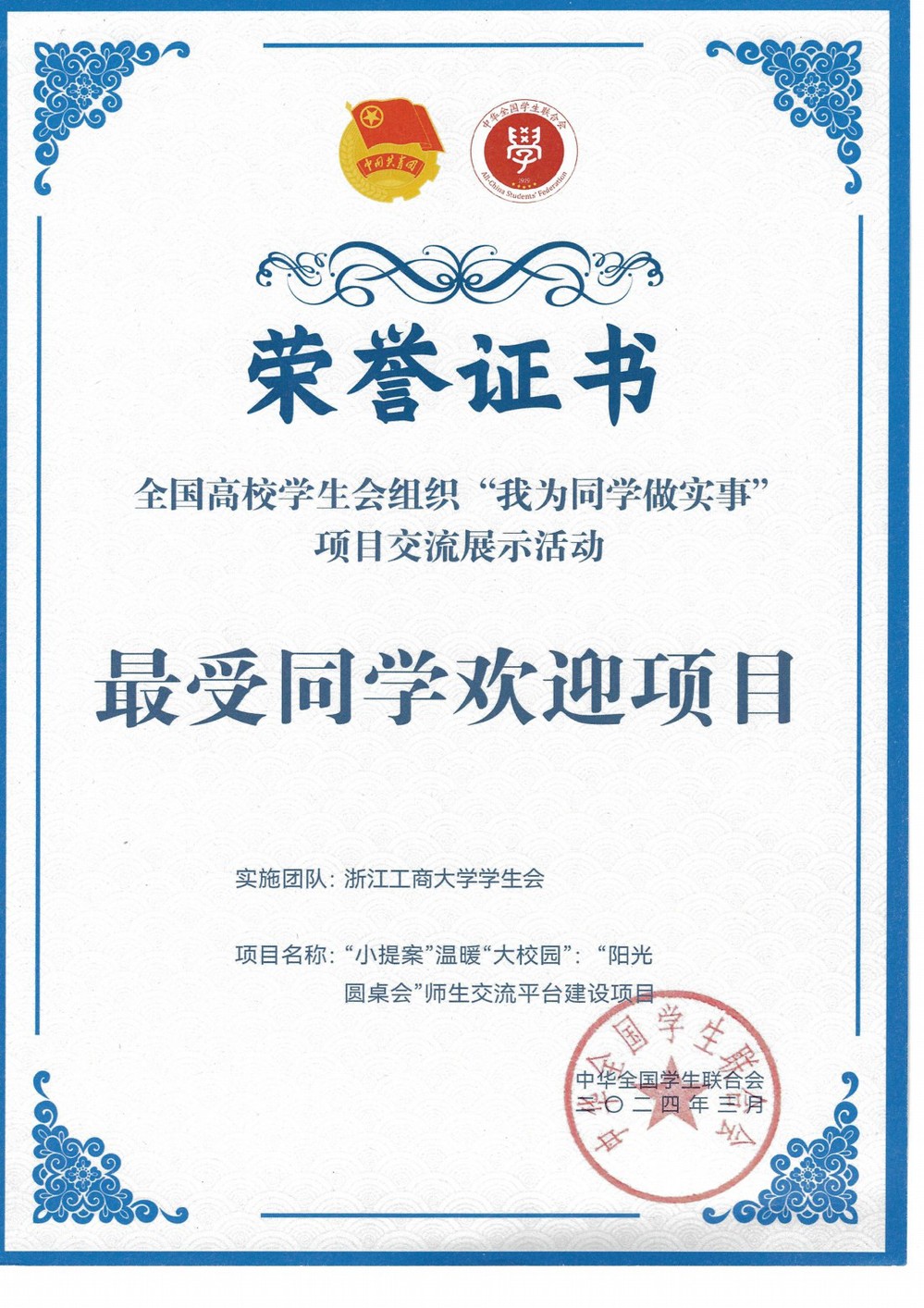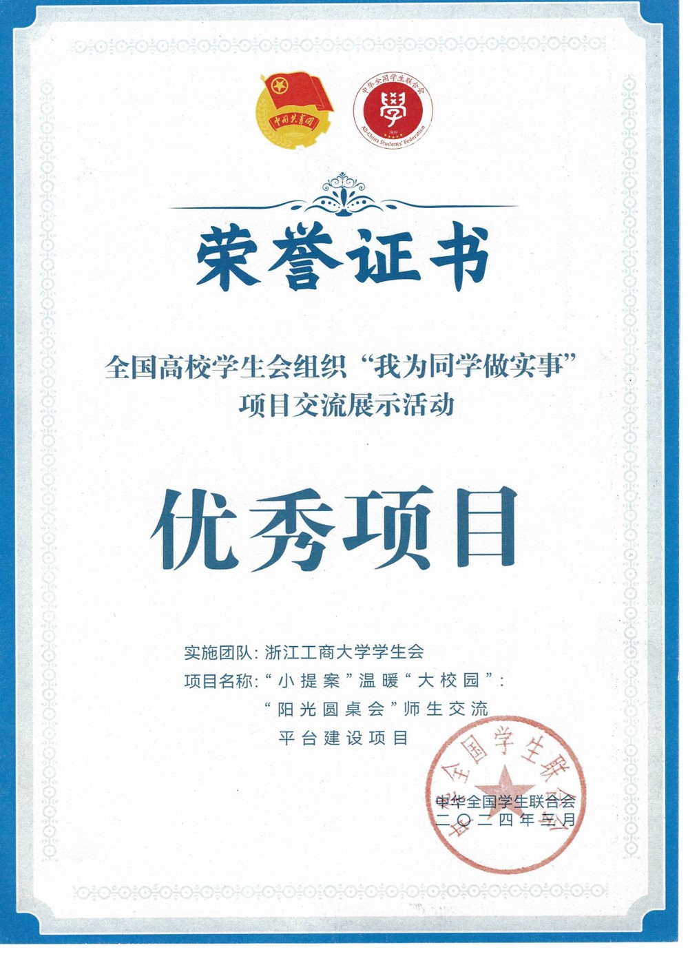 你的心声有人听!聚焦平安校园、食堂运营、教学空间利用等多项热点问题,邀请学生代表与职能部门面对面交流,累计开展72期,3000人参与,惠及2.3万人次,解决问题超1万件,获评全国学联我为同学办实事“优秀项目”“精品项目”“最受同学欢迎项目”,让理性维权成为青春共识。