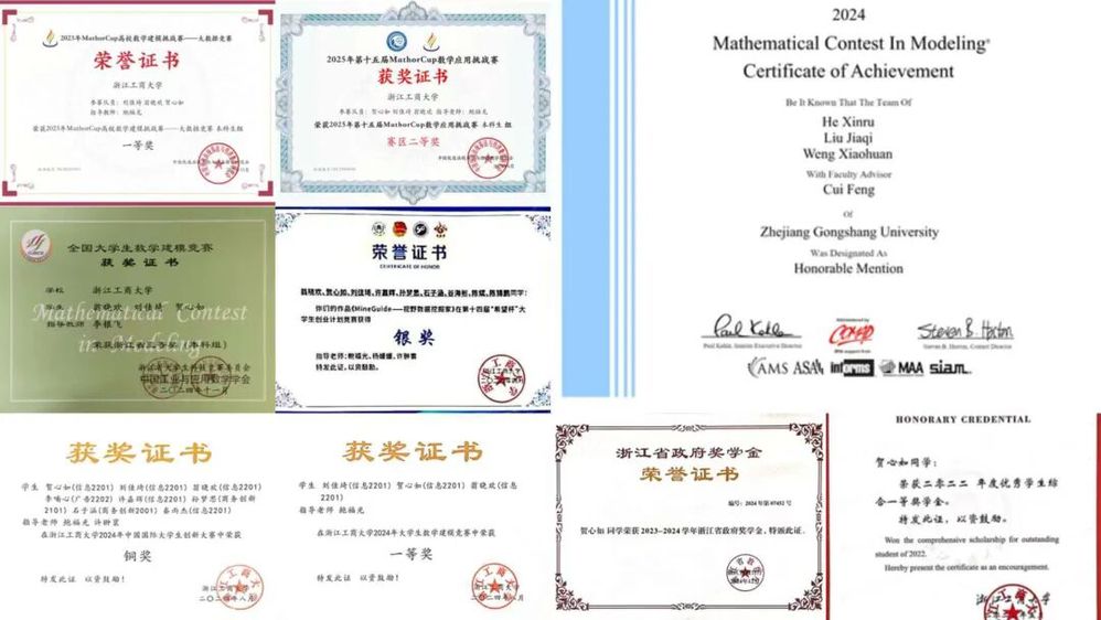 实践经历是贺心如大学成长中浓墨重彩的一笔,其中全国大学生数学建模竞赛的经历最令她印象深刻。陌生的模型、复杂的题目成为比赛中的常态,即便平时积累了不少算法和模型知识,仍需在短时间内快速学习新内容并落地应用;为设计模型、调试编程,她和团队常熬夜攻关,甚至连续几个通宵仍找不到最优解;成员间在方法选择、分析思路上的分歧,需要反复沟通协调、折中尝试;数据缺失、计算结果不合理的问题出现时,她也曾陷入自我怀疑。但这些困难并未让她退缩,反而让她学会了冷静拆解复杂问题,在团队协作中理解了互补与高效沟通的重要性,更在高压环境下练就了坚持与自我调节的能力。最终,他们的作品获得评审认可,这段经历也让她深刻体会到,真正的成长往往蕴藏于直面挑战、攻坚克难的过程之中。