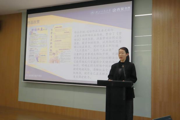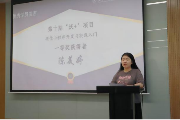 本次仪式邀请第十期“沃+”项目优秀学员——《打造职场盾牌:大学生劳动权益保障实战攻略》课程的优秀学员黄敏雅同学、《微信小程序开发与实践入门》课程中的优秀学员陈美婷同学作经验分享。黄敏雅同学表示,依托“沃+”平台,她获得了持续前行的底气,从研习短视频拍摄至聆听劳动权益课程的过程中,她不仅在创意构思与镜头语言层面渐入佳境,亦于师生之间积淀了敢于迈进的勇气。陈美婷同学表示,通过“沃+”项目课程,她从零基础起步,借助AI辅助开发,仅用数小时便完成了传统开发需数周才能实现的创意小程序,掌握了从账号注册到项目落地的完整流程,并深刻体会到AI与开发深度融合的优势,实现了从基础操作到独立开发的成长跨越。